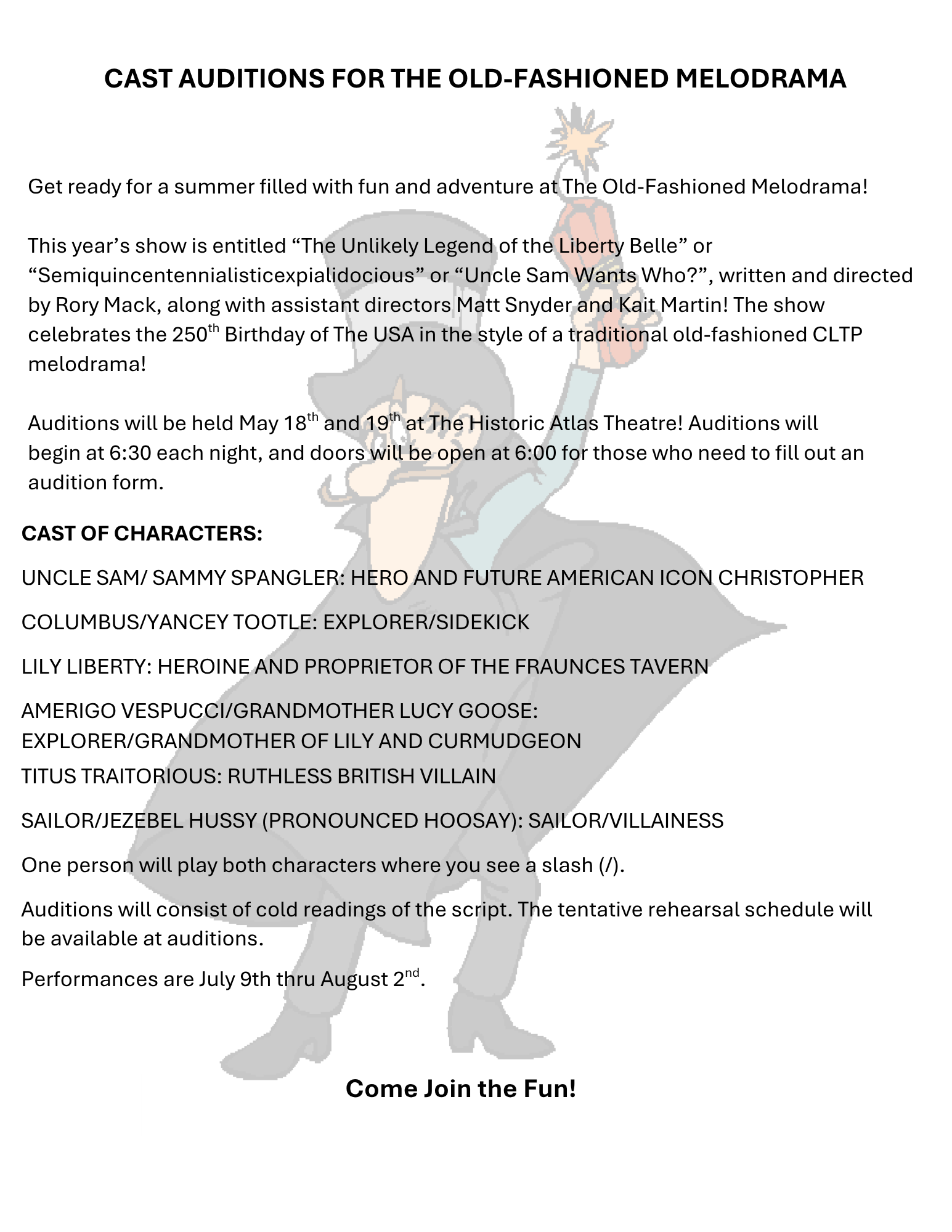 Audition Notice: The 70th Old-Fashioned Melodrama